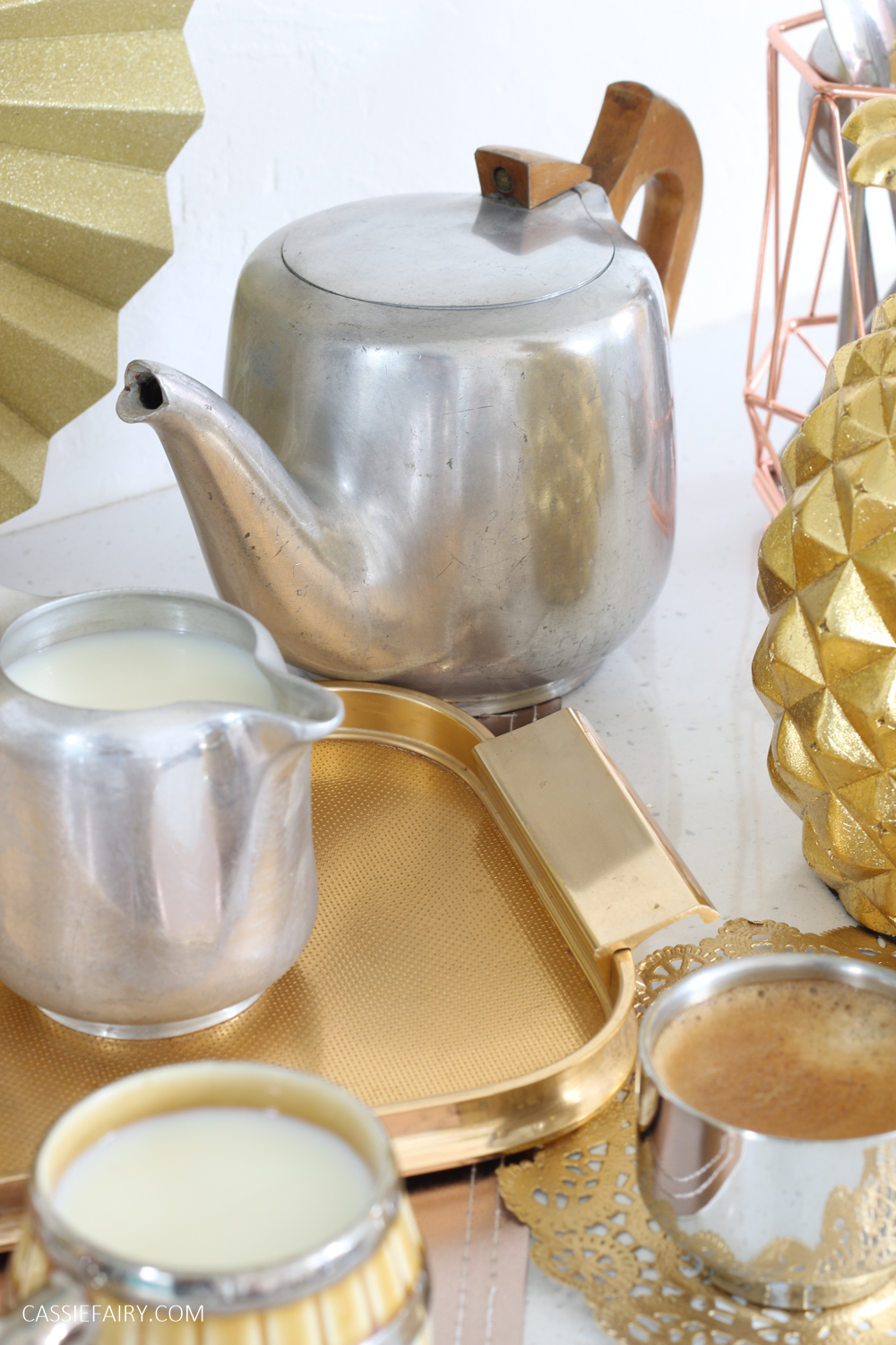 Looking for more cleaning hacks for Picquot Ware? I’ve previously shared a photo of Peter’s gleaming tea set along with the original price list and more tips for cleaning the inside and refinishing the handles so be sure to check out that blog post too.