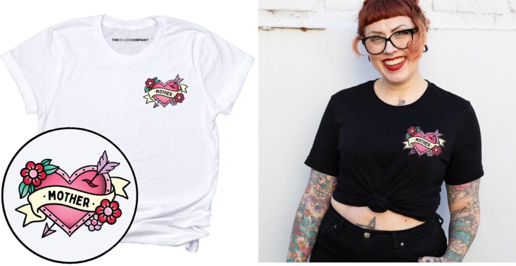 When this gorgeous t-shirt design popped up on my feed, I simply had to share it with you all. This tattoo-inspired ‘Mother’ heart t-shirt is from The Spark Company and it’s the coolest Mother’s Day gift I can think of.