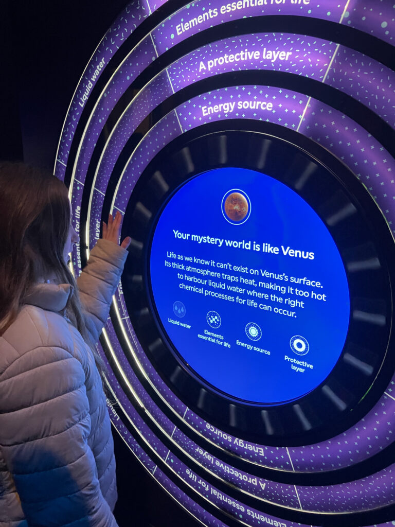 The exhibition is like a tour through the solar system, with interactive elements throughout. My niece and nephew are now high-school age and they enjoyed getting involved in all the activities just as much as the younger kids did. And, let’s face it, I was equally as excited to find out more about the James Webb space telescope, explore Jupiter’s icy moons and see the capsule that returned space samples to Earth.