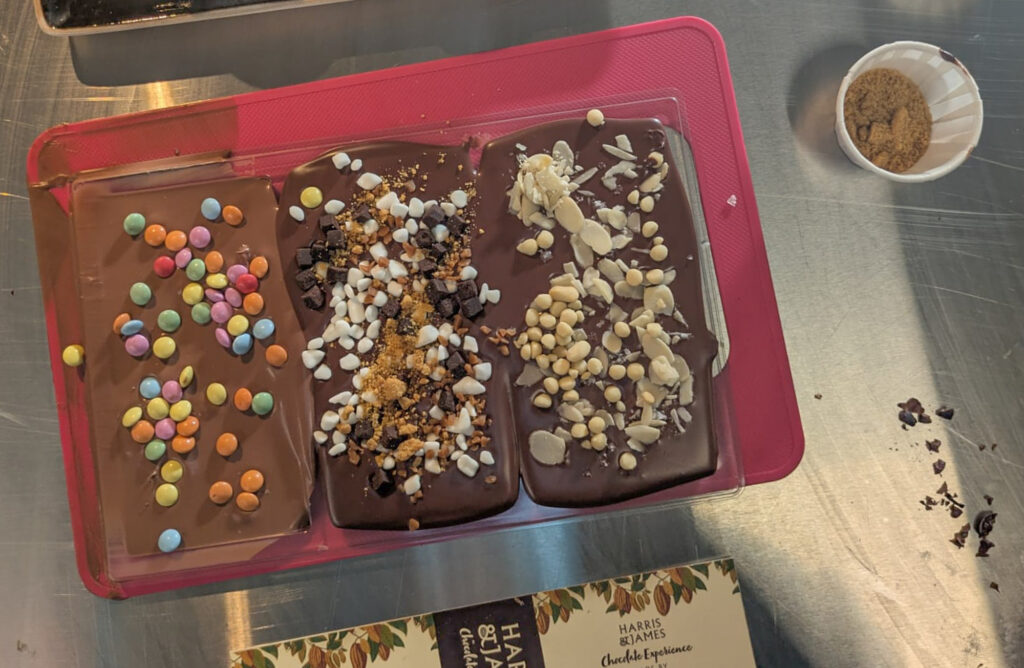 An experience that I’ve recently enjoyed with my friend and her daughter is chocolate-making at a small local factory in Suffolk. Moulding your own bars of chocolate and hand decorating them with caramel, marshmallows, smarties, brownie bites, shortbread and meringue is absolutely the best way to spend a Saturday – for kids and for grown-ups! And it didn’t cost much more than the normal price of the chocolate in the factory shop!