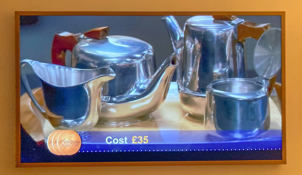 So I was excited to see a set of Picquot Ware appear on a BBC television show – Antiques Road Trip. This episode was first broadcast on Monday 18th November 2024 at 16:30pm and is titled ‘Baroque Besties Back on the Road’. It’s from series 29 and is episode 11 of 20.